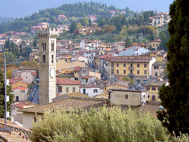 Florence is another story all together. Had a good time with Amy, Julie and Carrie (Cousins)- one night for Pizza at Fiesole and the birthday party amidst the low wooden-beamed dining room and three communion dinners which surrounded us. But the air is thick with fumes and I realized by my absence from Venice how much an American abroad I am – an uncomfortable feeling at best.