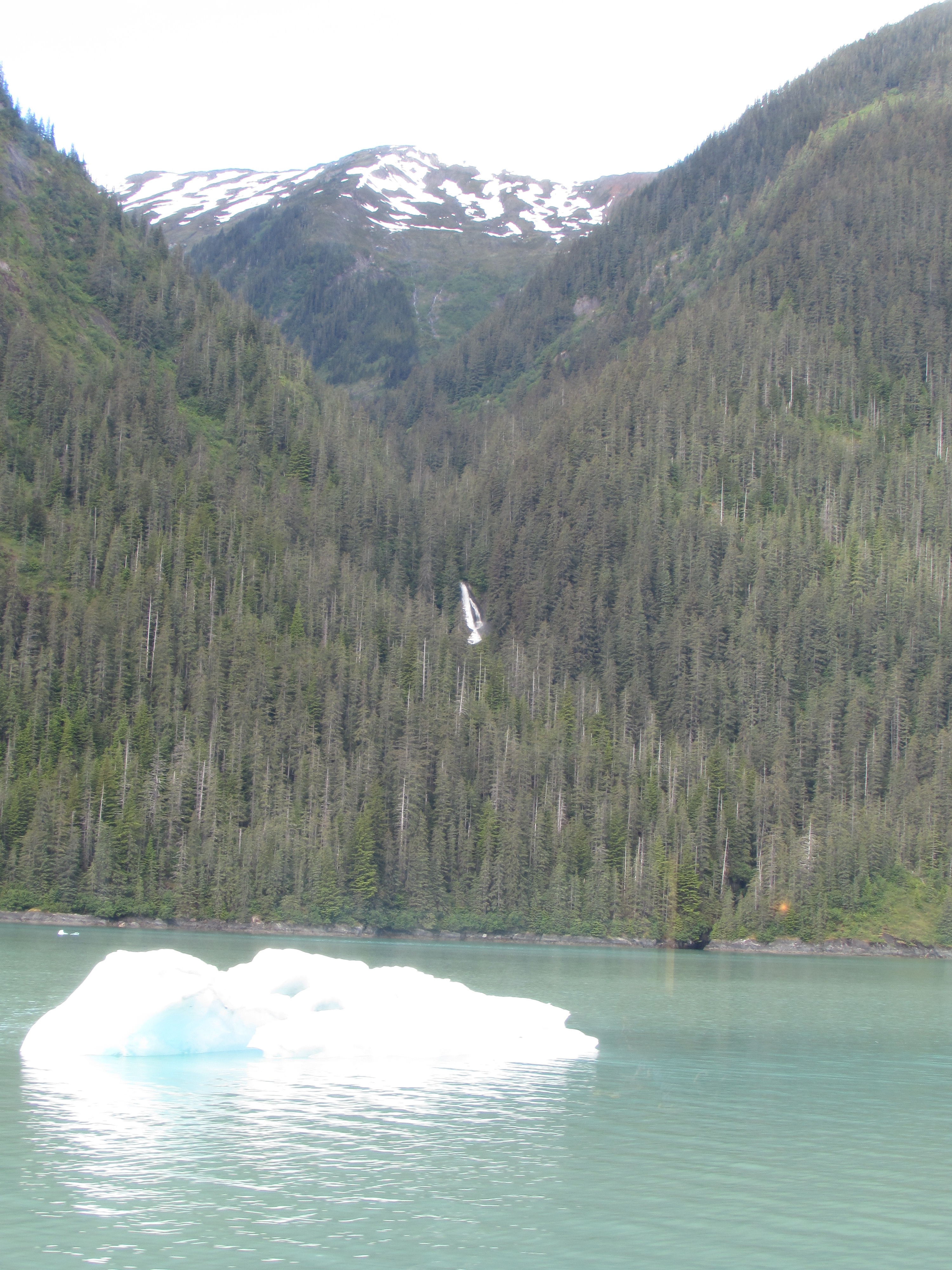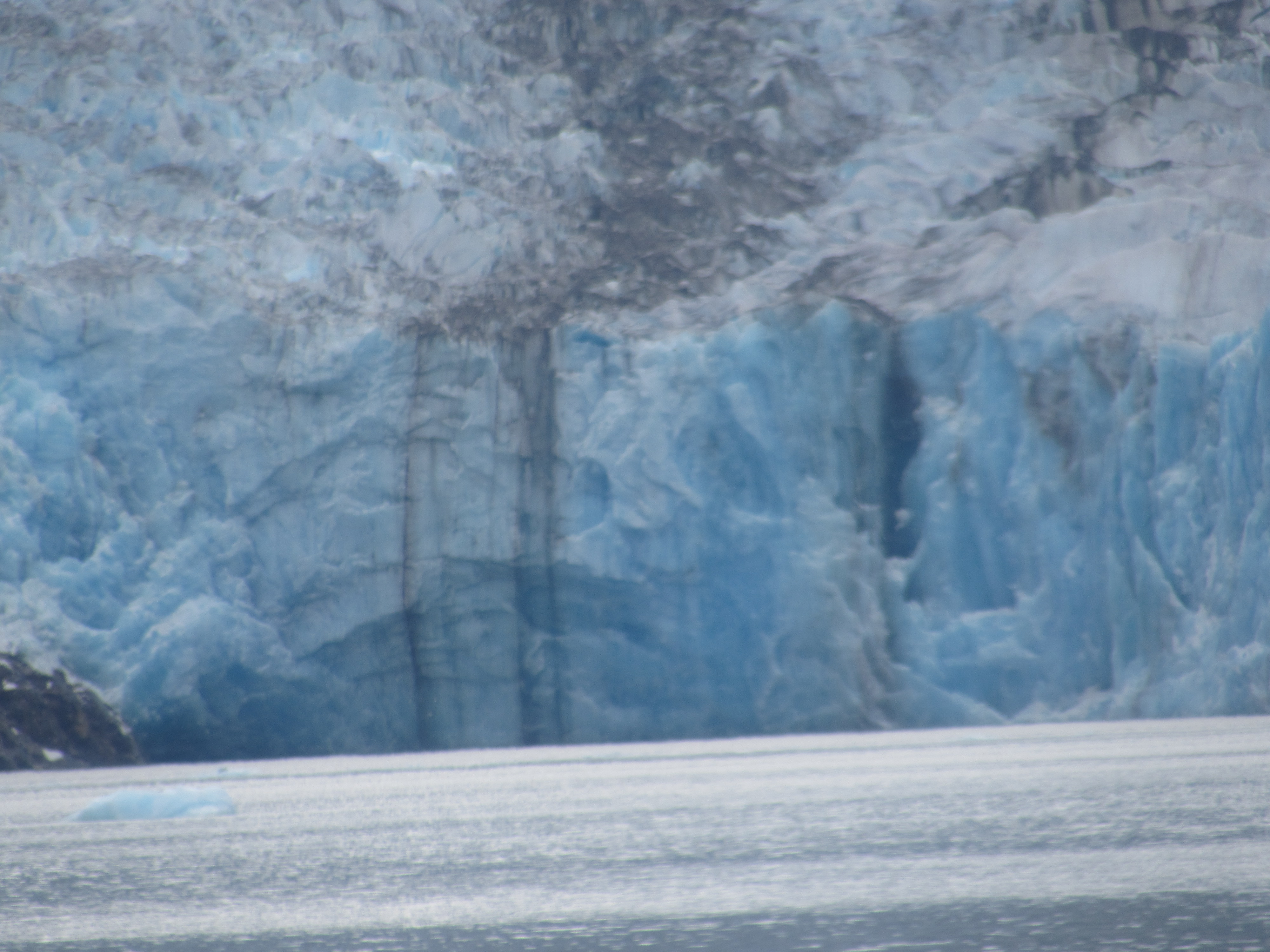 We were parked about a half mile away from The Dawes Glacier, and throughout the morning, could heard occasional loud dynamite sounding bursts, following the calving events of ice falling from the glacier’s face by about five to ten seconds due to the distance between the ship and the glacier.