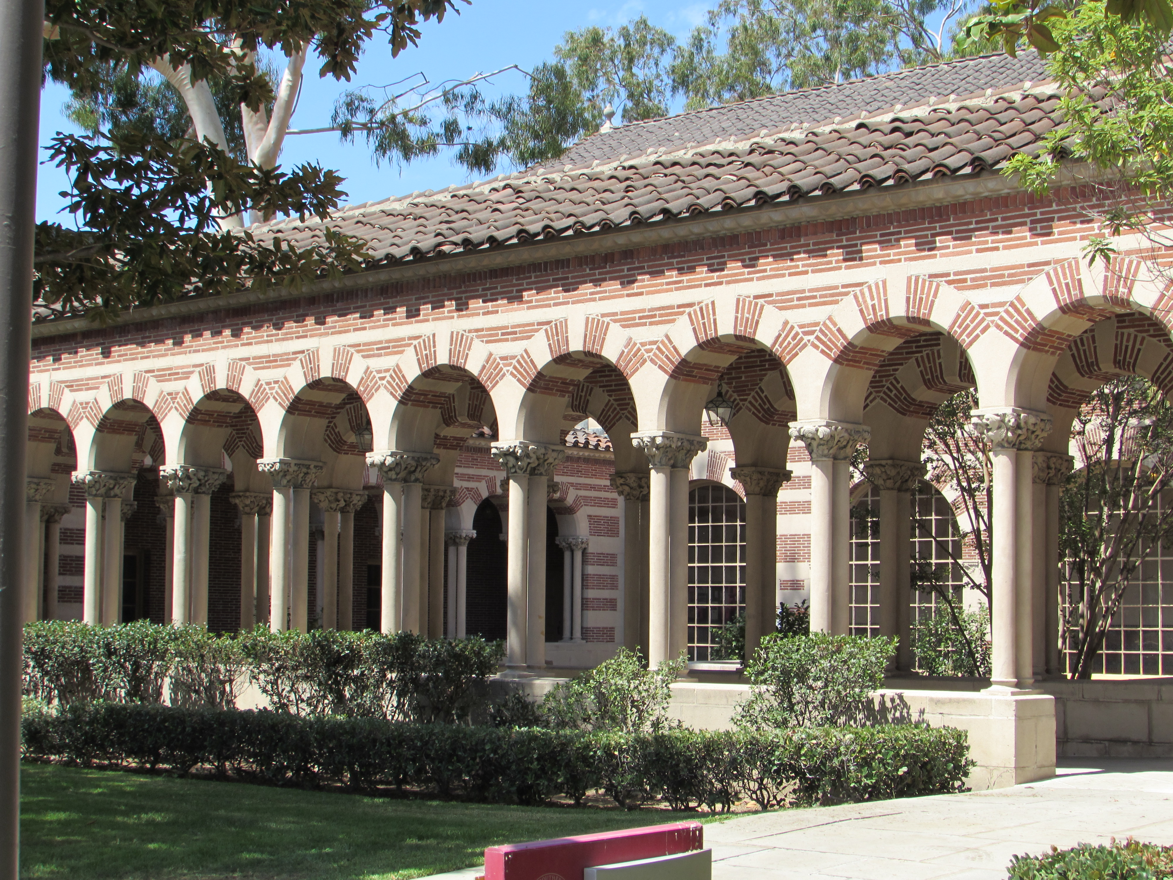There is a lovely courtyard. You can see this to your left as you enter the campus from the Exposition Metro stop.
