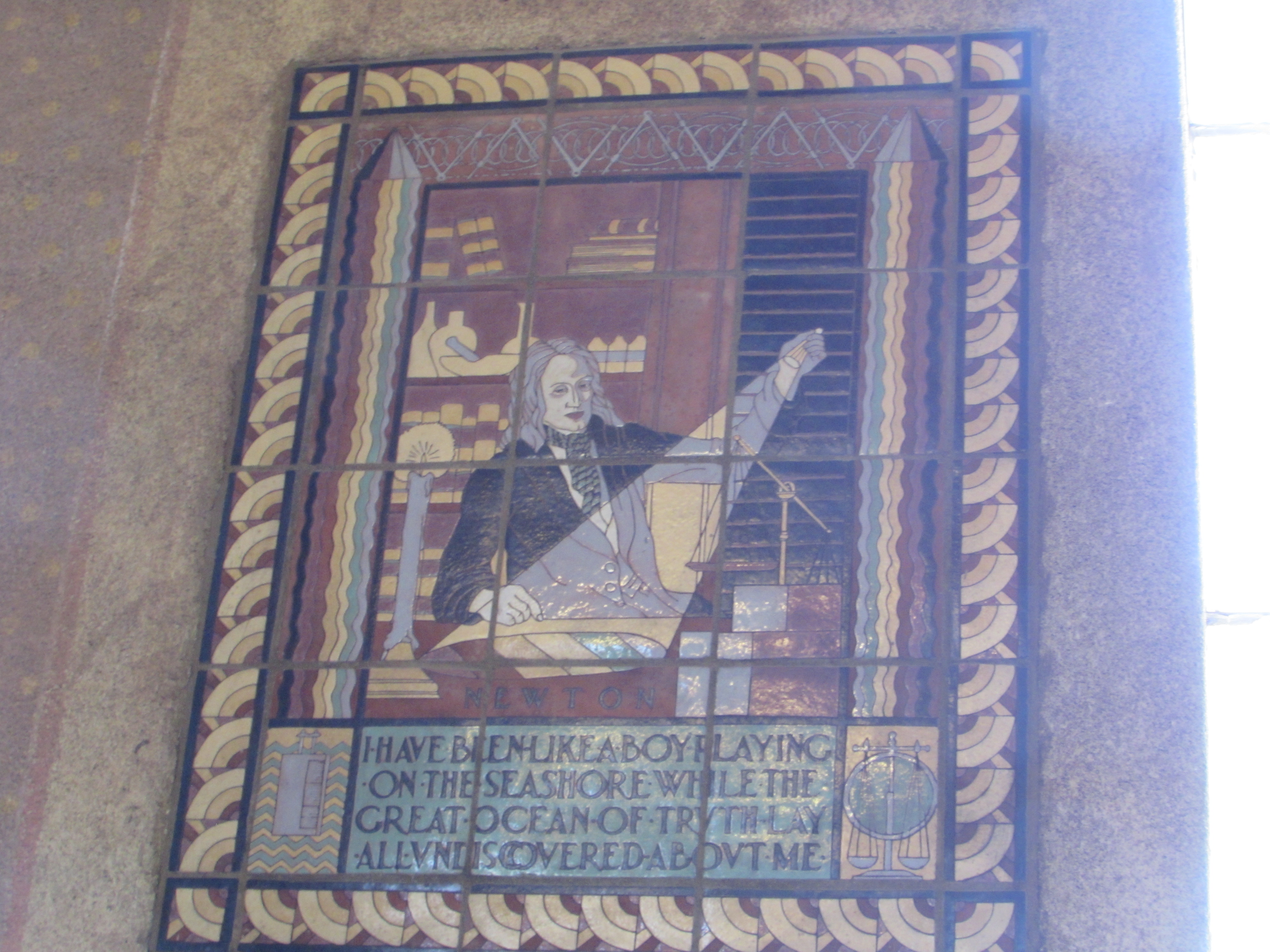The library has tile mosaic panels around the room under the windows with each of the philosophers of note.