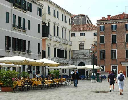 We met on campus in my office, currently without an A/C unit, the previous one having died a loud and horrible death, and we walked together to the center of campus to the Tudor Campus Center, where we had lunch out in what I want to call the piazza, in front of the campus center – I swear that if I were to take more advantage of that space, I would never be stressed out, because a half hour sitting under an umbrella there takes me back to sipping un cappuccio in Campo Santo Stefano in Venice.