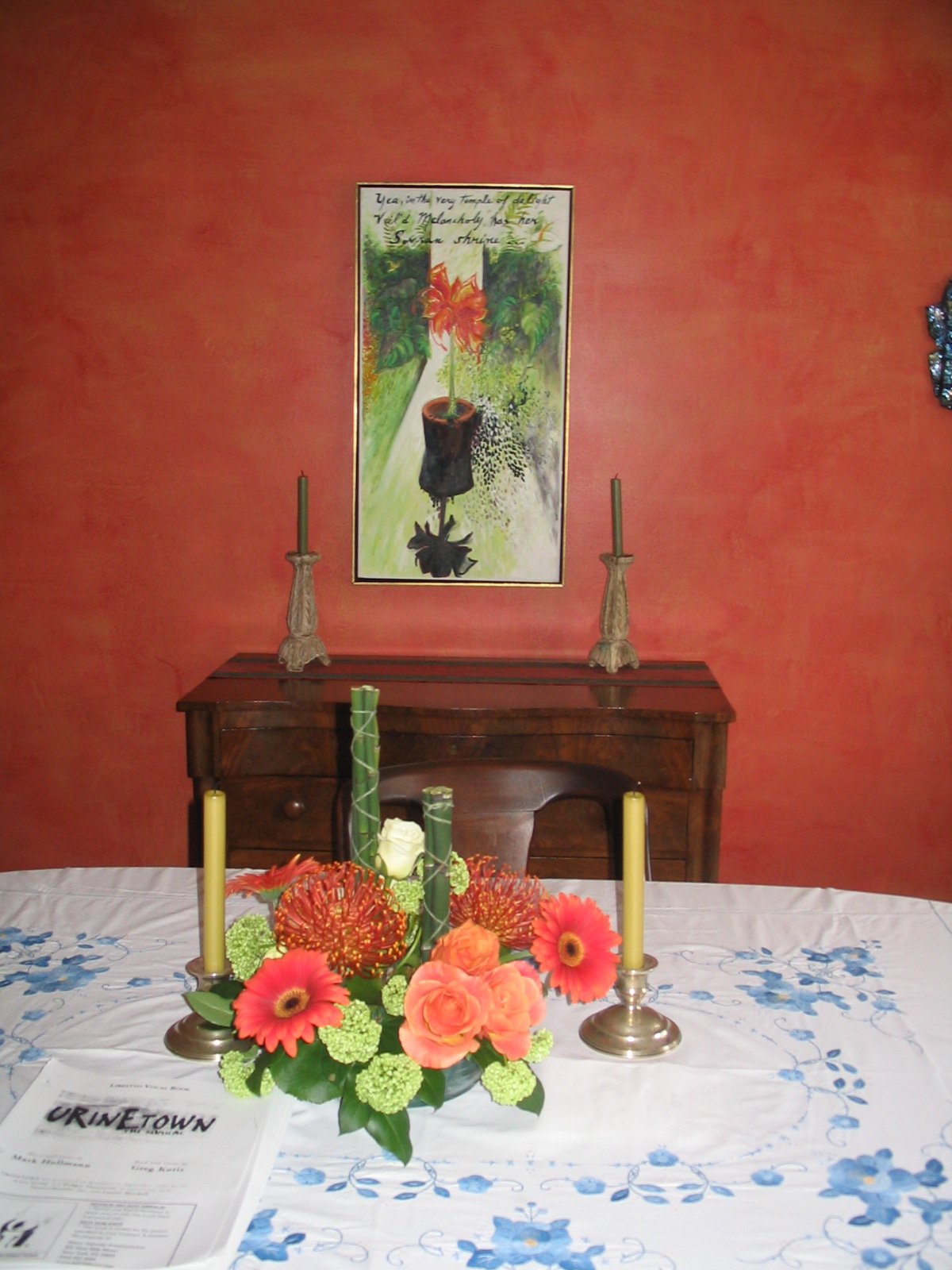 We made the deal and after the show closed a few weeks later, picked up the painting and hung it in our dining room. I actually painted the walls of the dining room to better show it off.