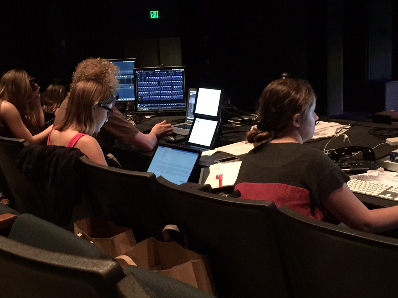 Student Designers for Dark of the Moon at work, Bing Theatre