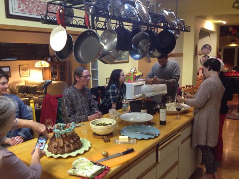Chris and Whitney had brought down twelve Dungeness crabs with them, which he cleaned with a hose in the front yard; a happy group then picked the meat out of for about an hour until there was a huge platter of crab on the counter. We had it for dinner on Christmas along with a spectacular pork crown roast, and squash terrines topped with sliced truffles. We had crab cakes for Boxing Day dinner. Everyone contributed to the preparation or clean up after the meals. There were many games of pool, and hours of enjoyment from watching the next generation play with their Christmas toys, or the young parents play with their next generation.