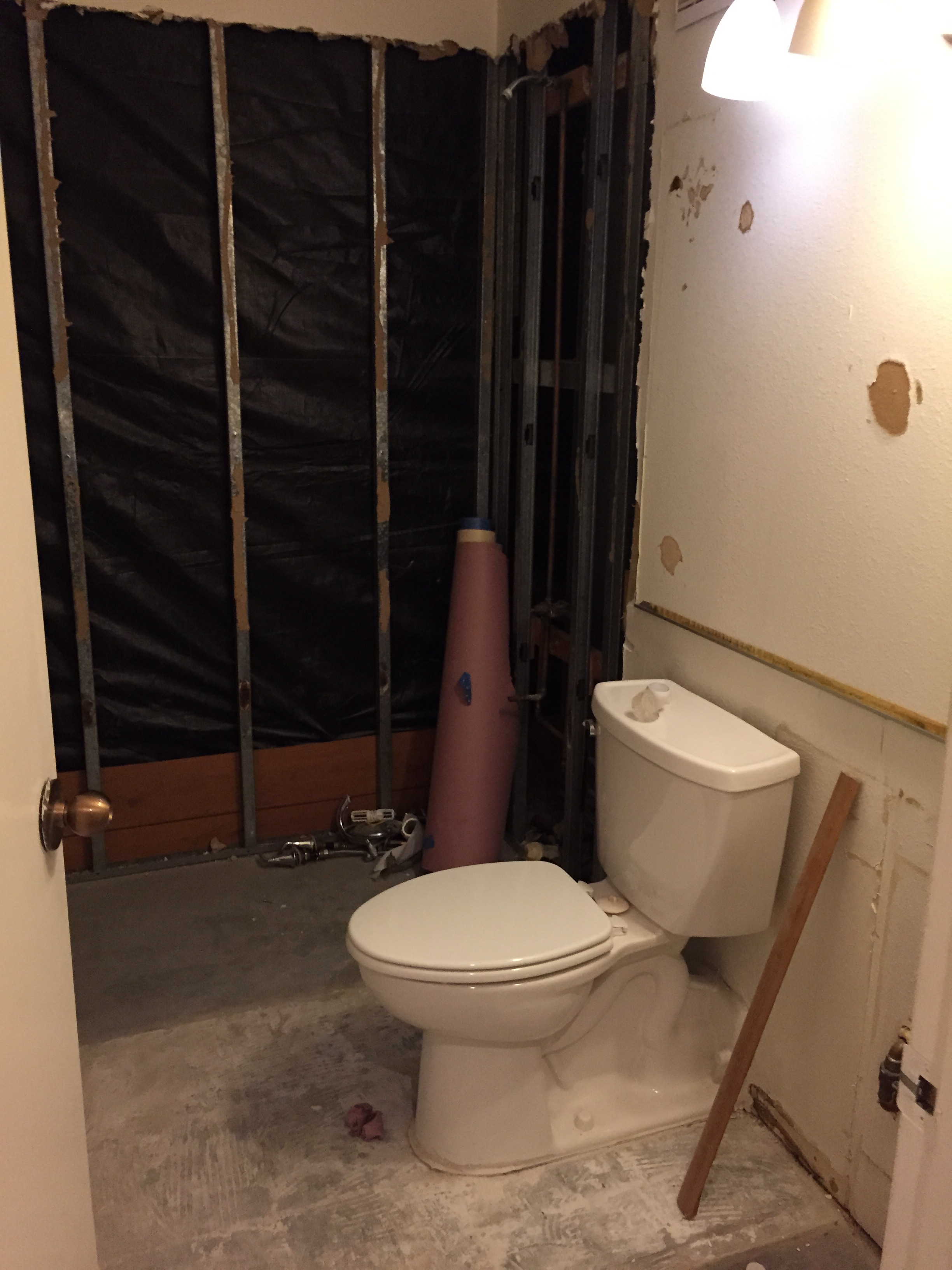 The space is looking pretty horrific now. You know that time during the load-in in the theatre when there are tools piled around the backstage area, after the carpenters have finished for the day? That’s the way our guest bathroom looks now. Come to think of it, it is probably the familiarity of chaos that I also love about remodeling.