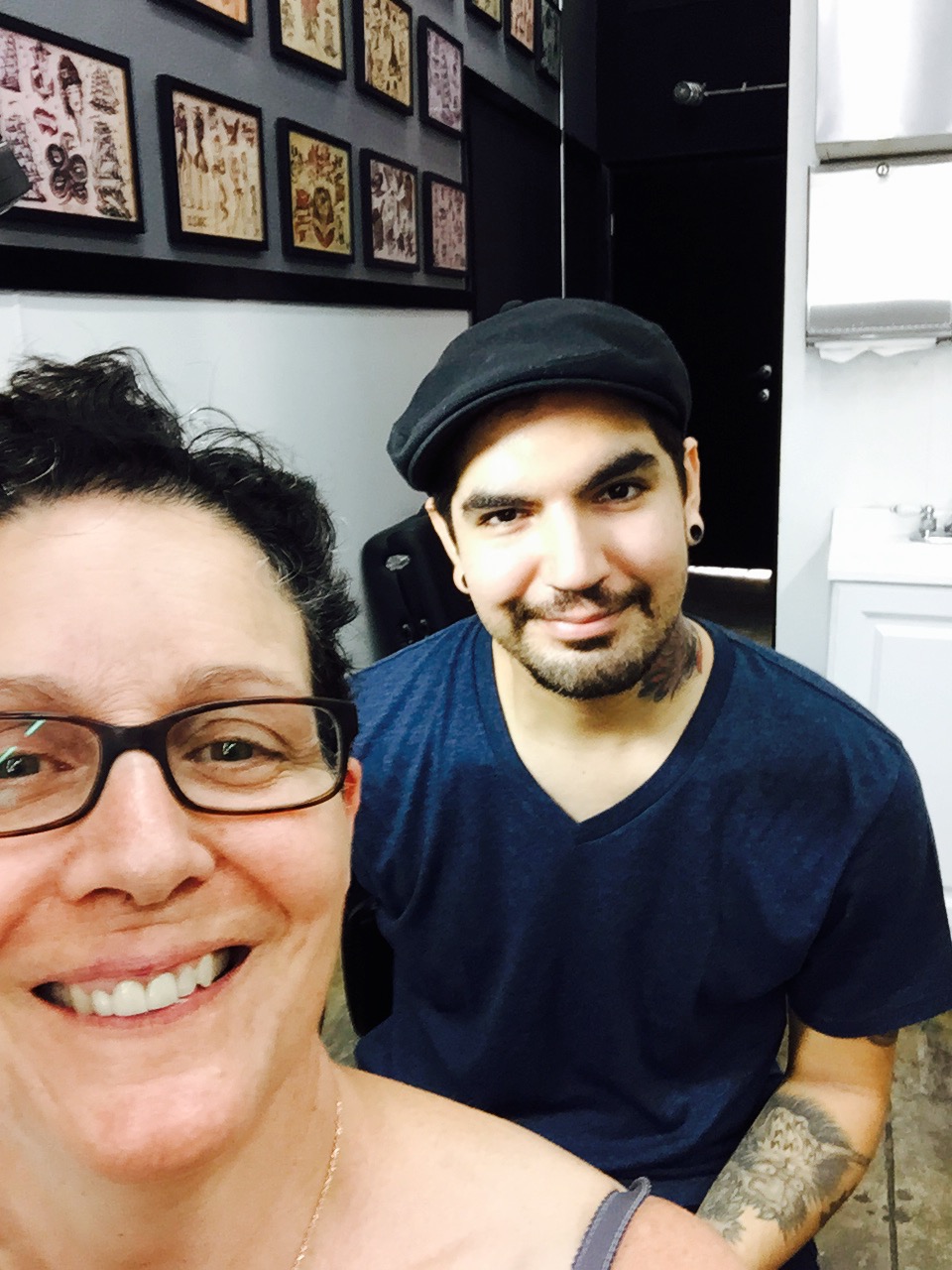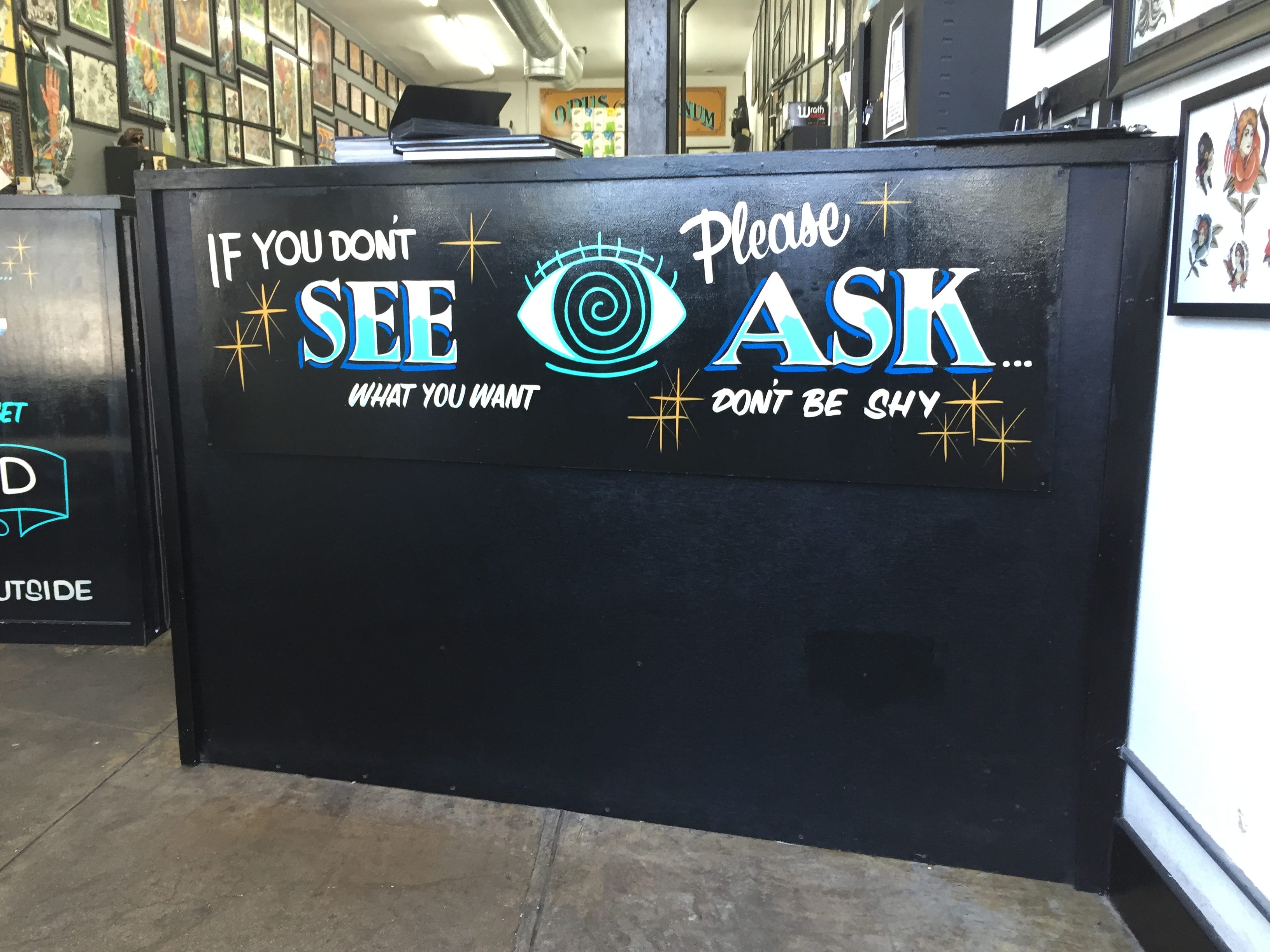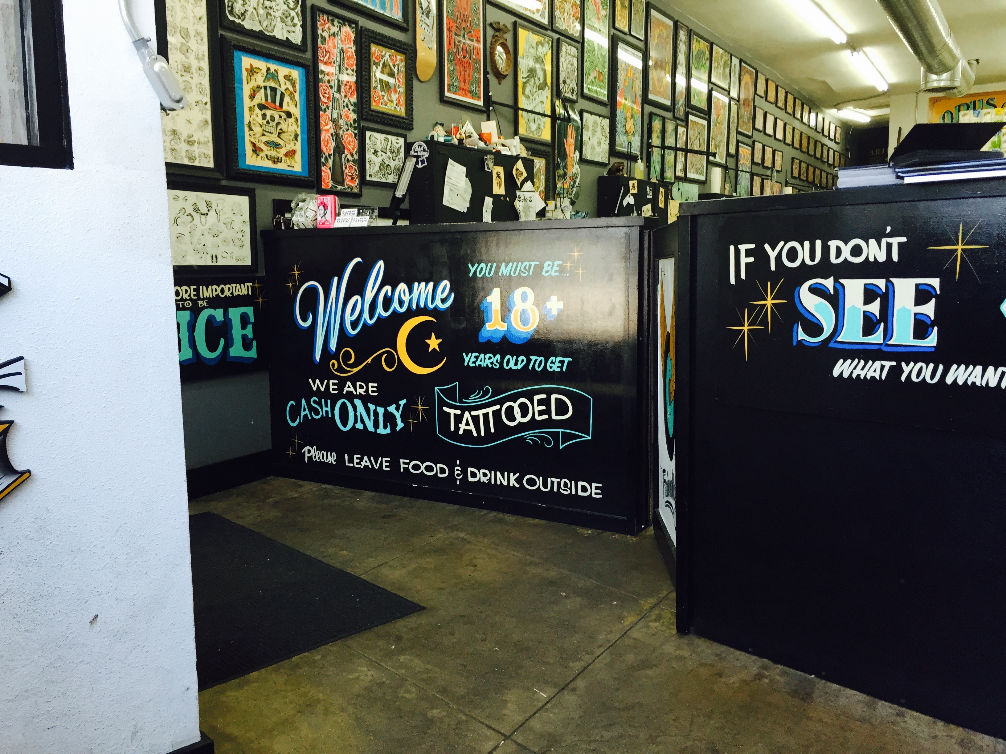 Just before leaving, I texted a photo of the card to Chris, asking him for a sanity check. He approved (duh, Mom) and off I went. I pulled up in front of Alchemy Tattoo, which is on Sunset Blvd in Silver Lake. It was about 11:45AM on Sunday, and the security doors were not quite open, but I pushed my way in, heart pounding.