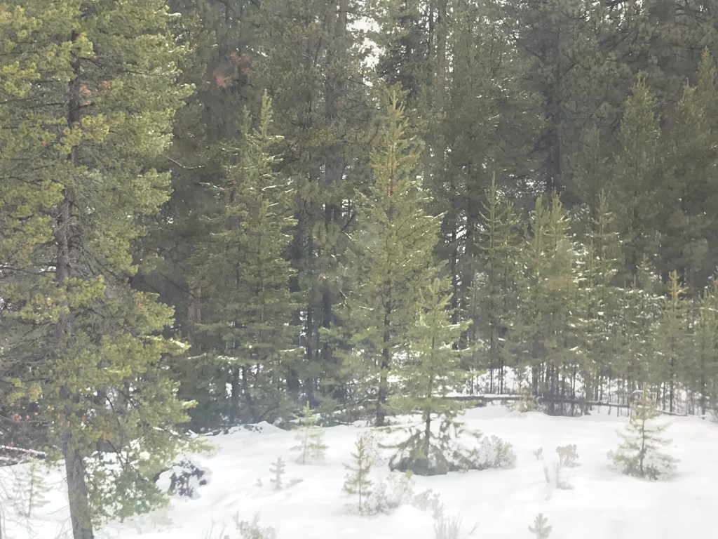 The train trip was a chance to reflect. In between naps. After lunch Day 2, when I woke up from a nap, the rain which had earlier tear-streaked the windows outside had changed to snow, and the deep accumulation chilled the windows to my left. I felt snug inside, listening to classical music and typing furiously.