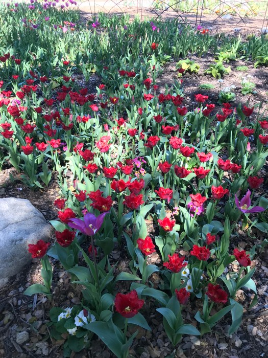 The gym, I’d scheduled at 9:30 but was an event my back seemed to have other feelings about. Beginning with the decision to go to the gym right after my chat with my pals about Italy made the day turn around. Later, still sweaty from my workout, I met my Merry Widow Master Gardener friend Jennifer at Descanso Gardens to see the tulips which are in bloom.