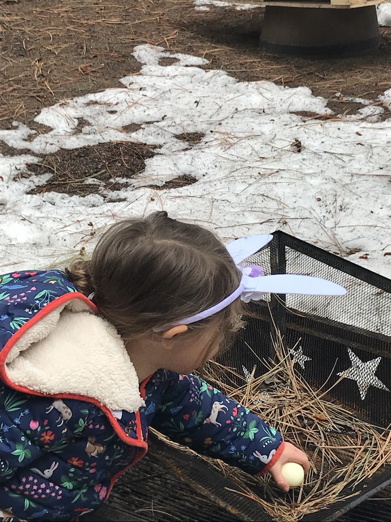 Easter was tangible for me in a way that it is for most small children, I imagine. The anticipation of the hunt, the glory of the prize of finding eggs stuffed with candy. Dyeing the eggs is a ritual I feel lucky to have learned. There is always at least the one lost egg which turns up with a spectacular reek a week or so after Easter. My daughter-in-law is smart about this, and has her daughter hide the eggs outside, where any lost eggs will merely feed the many members of the animal kingdom.