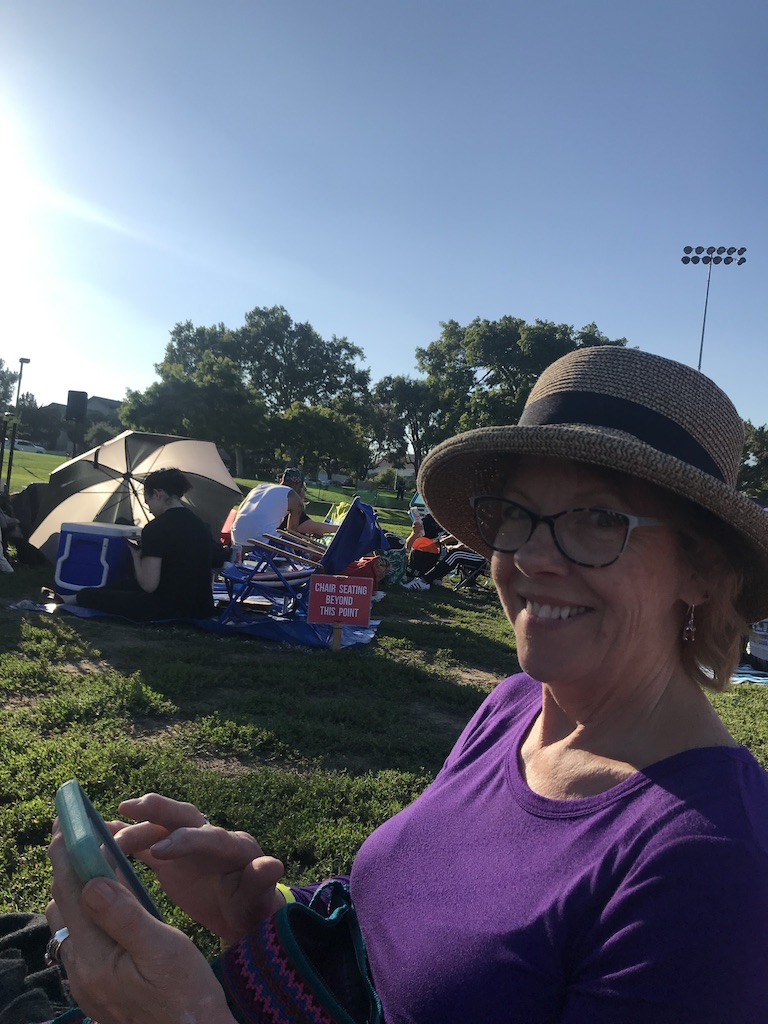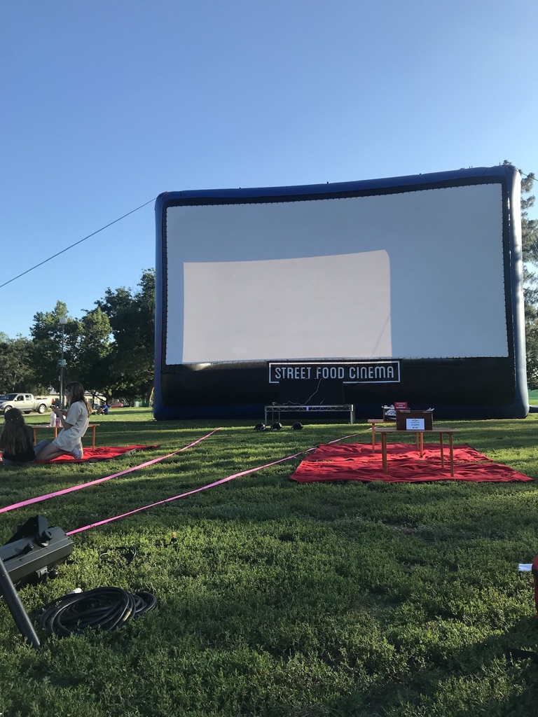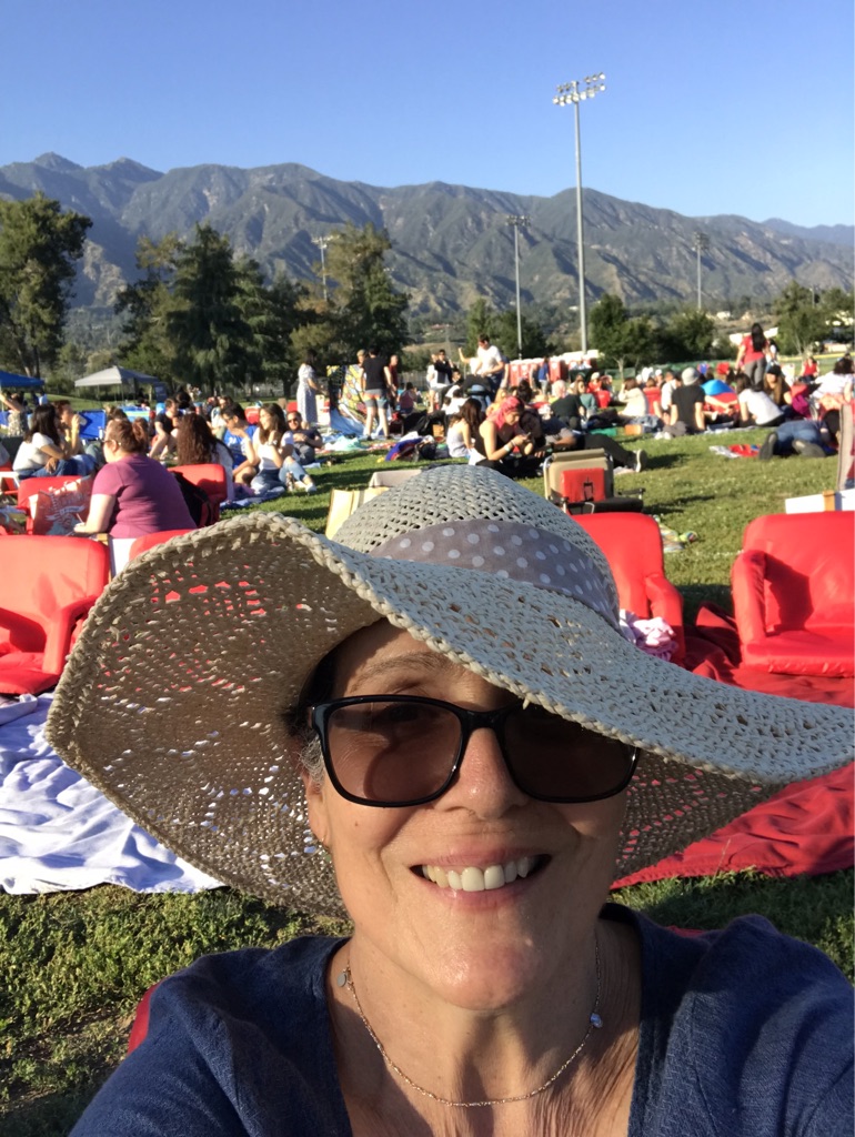 We’d packed a picnic so that we after our Huntington Gardens walk we could go and join some Sanctuary Fitness pals at Victory Park for the Street Food Cinema to watch The Greatest Showman, a movie which had eluded me until last night. On the way, we stopped at Target so I could get the suitcase, some pajamas that I wouldn’t be mortified to be seen in by the Tutors Supremes and my other friends I hadn’t seen since 1983 in Venice. I know, you’re saying, it doesn’t matter, they’ll be horrified anyway, never mind the PJs, but a girl’s gotta maintain her dignity. So off to Target we went. Having had a workout early morning, plus the long walk, both Martha and I were going to be very happy to sit down on the grass in Victory Park, food trucks ringing the large lawn, and a general atmosphere of excitement to see a movie for the gazillionth time. Or the first in both Martha’s and my case.