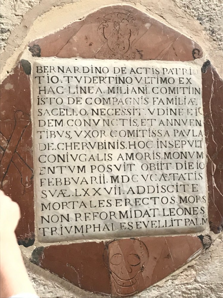 Arriving a half hour before the concerts, we had been ushered into the gracious 16th Century Palazzo by our hosts, the sprightly 84-year-old Tio Carlo and his wife Tita, who gave us a tour of the Palazzo, Tio Carlo first rushing ahead to fling open the windows. It called into mind the Dutch paintings of women opening their windows to throw out the slops. Not because of a lack of grace by Tio Carlo, but due to the physicality of the action of opening the windows. What I’d never considered was how architecture informs the body mechanics of daily life until I reached into the dark bathroom the other evening to turn on the light switch and laughed as my hand butted up against the wall about a third of the depth of the wall. The activity of living in an Umbrian Palazzo would be time consuming but would keep you fit. The stairs alone, with their 10-12 rises challenge your stride. The first day I arrived and mounted the steps of the Apti Palazzo in Civitella Del Lago where Marina and her husband Carlo live, I panted like a trout flung on the shore. In the subsequent days, I’m happy to say I gained power in my legs. What would have been an impossible flight of stairs we conquered yesterday easily in Montefiascone to see the Cattedrale de Santa Marguerita by dint of our post prandial chant of “One Carbonara, two, Carbonara….on the way down I silently chanted mascarpone uno, moscarpone due…You get the idea.