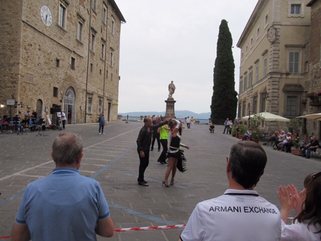 She took us first to the Church of San Fortunato, a church constructed in the 13th century. There was a music festival in Todi, so at the end of our tour (Giro) we stopped by the Palazzo of Tio Carlo, where in the grand salon, there were two music performances: a couple of guitarists singing autobiographical songs about Ireland, followed by a chorus of two dozen high school students from the local high school, singing a mix of music across the ages from an English fifteenth century song to a Beatles encore number. Dressed in black, they were conducted by a sophomore college student, passion writ large on his face. I sat in a chair along the windows separating us from another concert (Benny Goodman) outside, and marveled at his ability to keep the students focused and in tune.