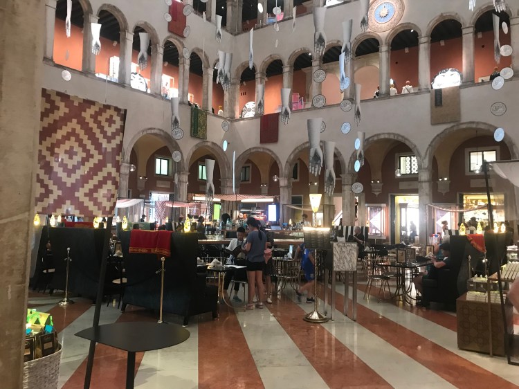 As mentioned above, the physical infrastructure hasn’t changed much. Yet many buildings have been repurposed to meet the insatiable demands of the tourists in Venice. This building was a post office when I was last in Venice and is now a department store. Caro and I went up to the shoe and bag department tried to imagine an alternative life where 700 euro shoes were the norm. We laughed a lot. These were the kind of things we might have done years ago when our lives were simpler and we had everything ahead of us. In 1982, there weren’t that many tourists, and the beautiful Fondaca Dei Tedeschis was then utilized as a humble post office with great bones where I waited in line to buy scores of stamps (francoboli) and those gossamer aerogram fold up letters where I poured out my heart and soul to my friends back home. The change is stark.