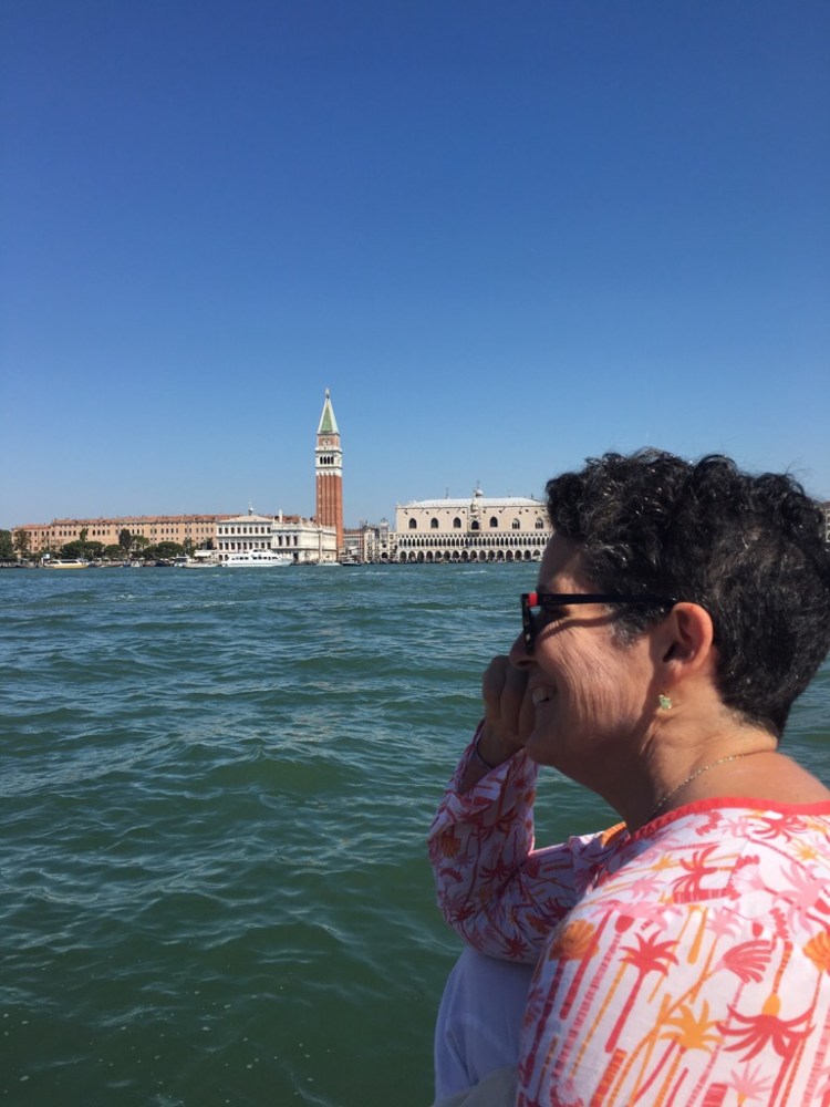 What was evident when I descended from the train and walked down beside the train, I easily spotted my dear friend, Caro, and she me, waving wildly at each other. I remembered the first time I walked through the doors of the train station in Venice at dusk and the magic of the city struck me as I watched the first Vaporetto (water bus) skim by, the huge lantern of Ca’ Foscari twinkling as my own Vaporetto powered past it. When I lived there in 1983, it took me a little while to meet and make great friends like Caro and her now-husband Alberto, but we then quickly became fast friends. And now, 36 years later, we picked up where we left off, during my recent five-day visit to Venice.