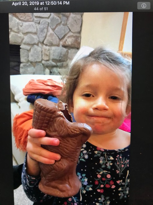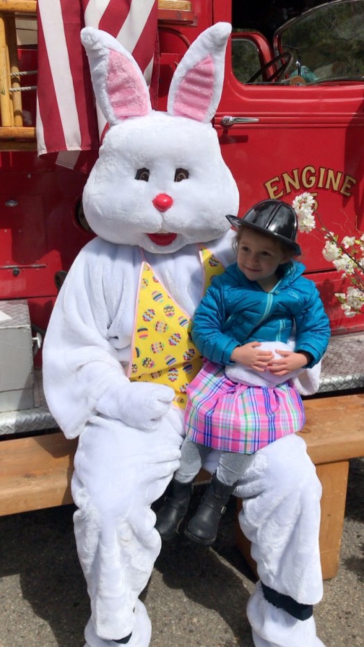Easter. A complicated day for the deeply agnostic former Presbyterian. Last year, I celebrated with my son and his wife and two children, going to the community’s egg hunt, the star of which was the Easter Fire Truck and the chocolate bunny who lost his head in the excitement of the celebration. Bittersweet to look at these pictures and be apart this year. This too, shall pass.