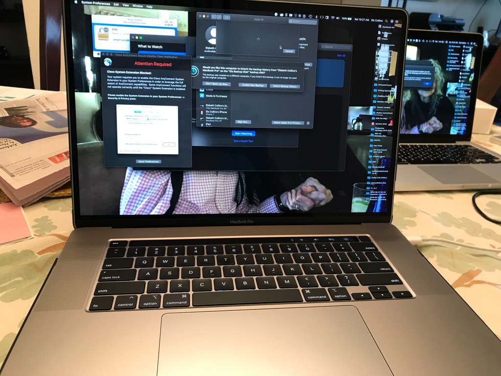 There’s always that moment where after you’ve oohed and ahhed over the sleekly redesigned screen and keyboard; the moment of realization (I remember this in 2015) that “Oops, there’s no more cd slot. No more headphone plug” For me this time, it was the realization that there’s no more HDMI port – all the slots are the same USB-C slim little ports. It is a small price to pay for the seductive offerings I had seen on the video sales pitch prior to plunking down my Apple tithe.