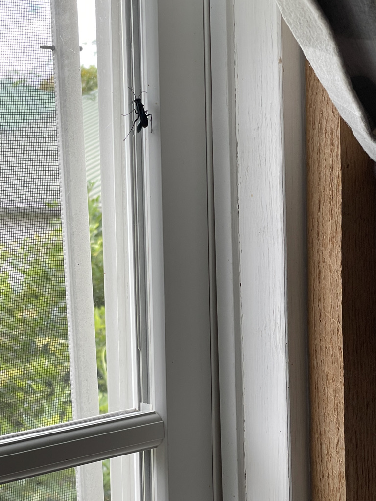 Today was the battle of the wasps. No, not like Jonathan Franzen, not in my writing, but in literal wasps invading the sitting room of the cabin. They aren’t exactly wasps, but are blue mud daubers – navy blue and metallic with an articulated thorax just like a regular wasp. Apparently they dine on black widows, but they were all over the place today and distracting as hell. About one an hour would make an appearance. And no, I did not gently carry them down the stairs to release them into the summer heat. But my confessions will stop there. Just don’t check my waste basket.