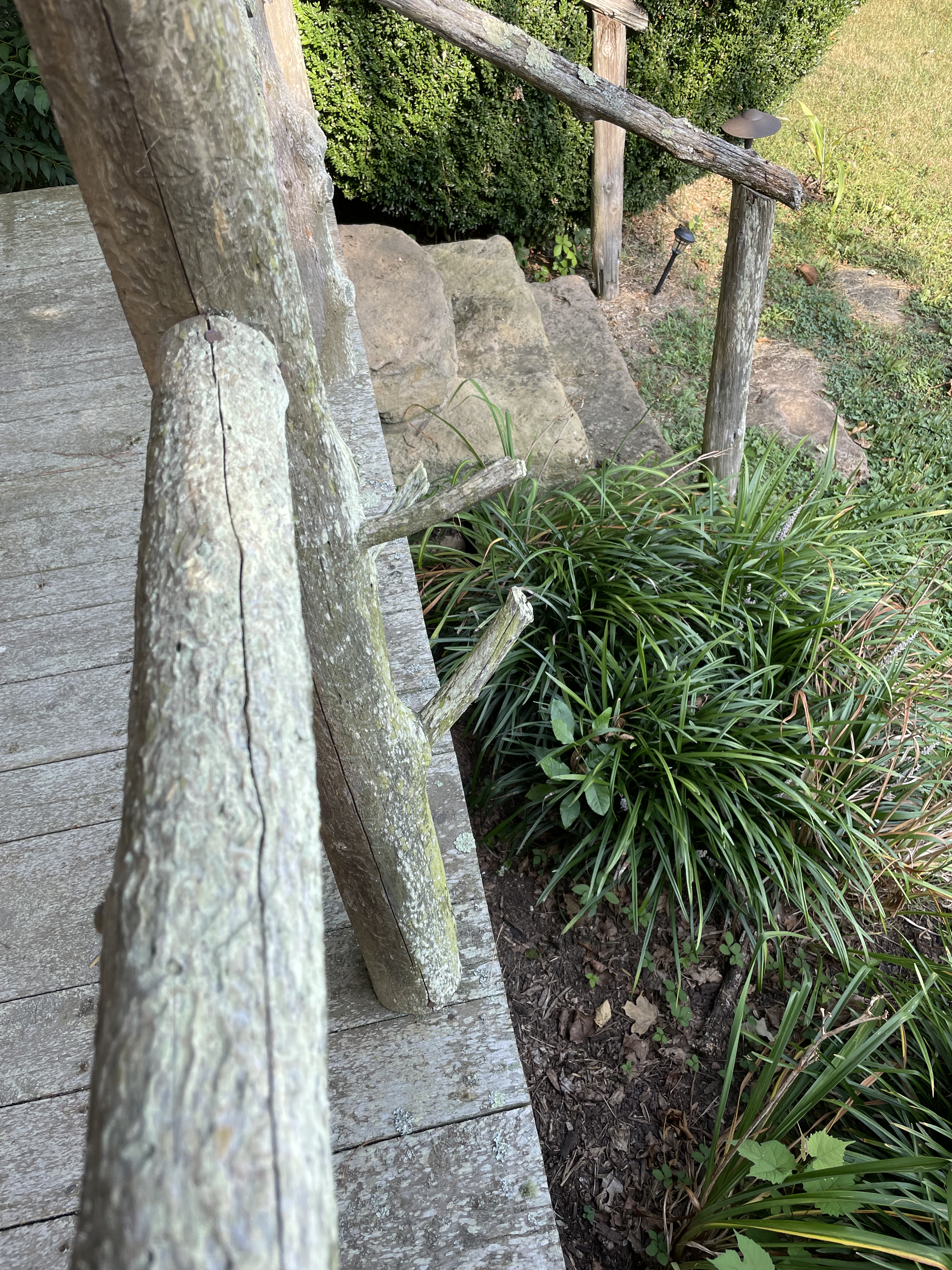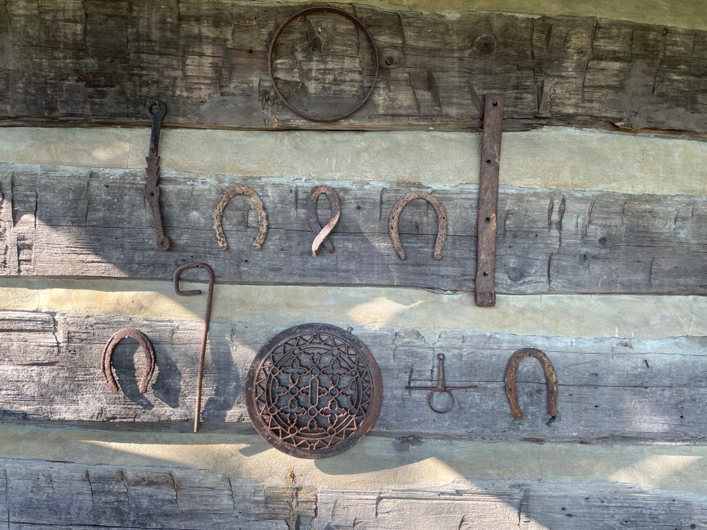 I can imagine people one hundred fifty years ago hanging their hats on the branches that remain on these posts. I found myself imagining today if Matthew Dobson, the first owner of the land back in April 1853 when he purchased the property and built the smokehouse note the decorative aspect of those insect paths and select those pieces to admire from the front porch? Happy accident? Or intentional design choice? There’s a lot of history here in this structure. I feel so fortunate to soak it up this week.