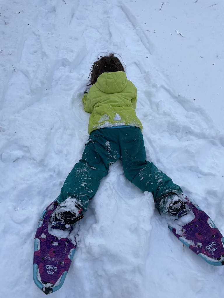 The next day, older and wiser, we headed off to do some snow-shoeing. The birthday girl was in the lead without really understanding what being a leader is. There was a lot of this….and it was divine.