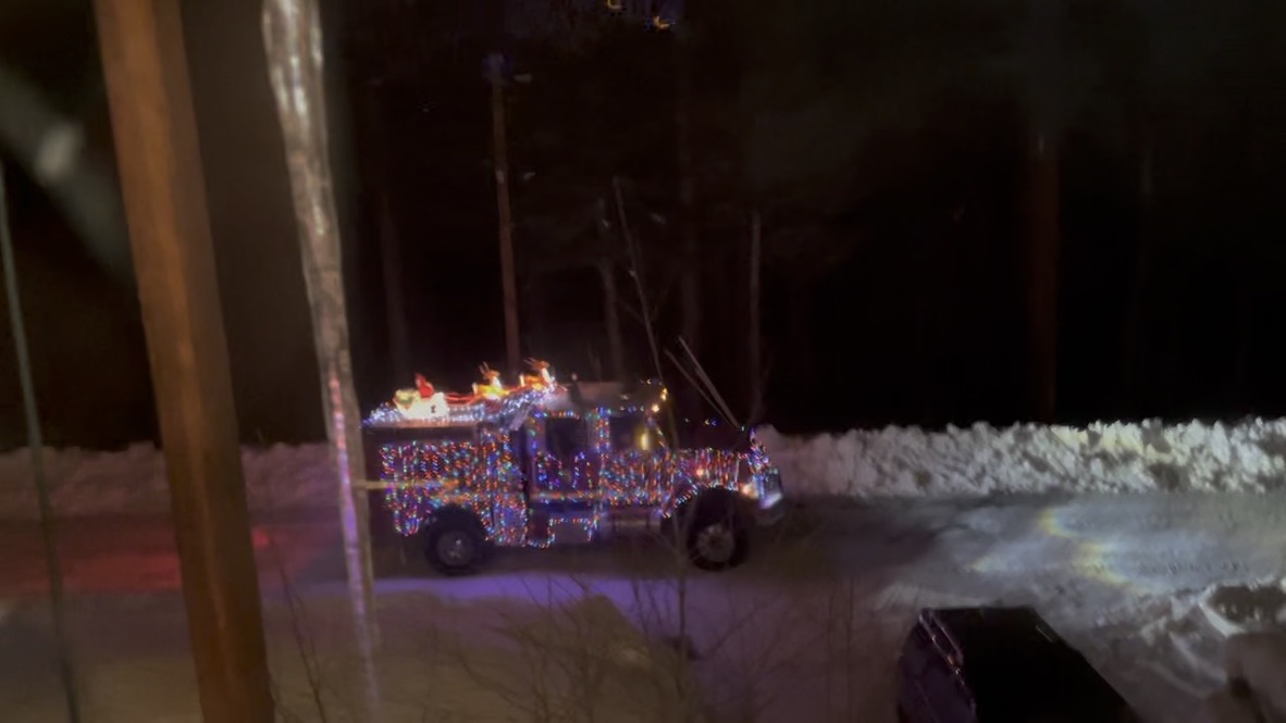 The last night I was there, the local fire truck/boombox blaring Christmas tunes came around the neighborhood, and I captured it from the warm safety of the house while super Mom took the girls out to get candy canes from the firemen, scooping up Cupid from the road before the Safety Santas went on their way. As if we didn’t owe enough to the fire fighters for their valiant efforts this fall in saving so many homes, now we had so much more to be grateful to them for.