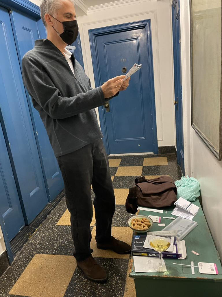 We want to see you of course but we are anxious. Being anxious, we have ten rapid tests here. What if you and Bob rapid test before coming into the apartment?…Sounds weird but it could make for good comedy material in plays for years to come!