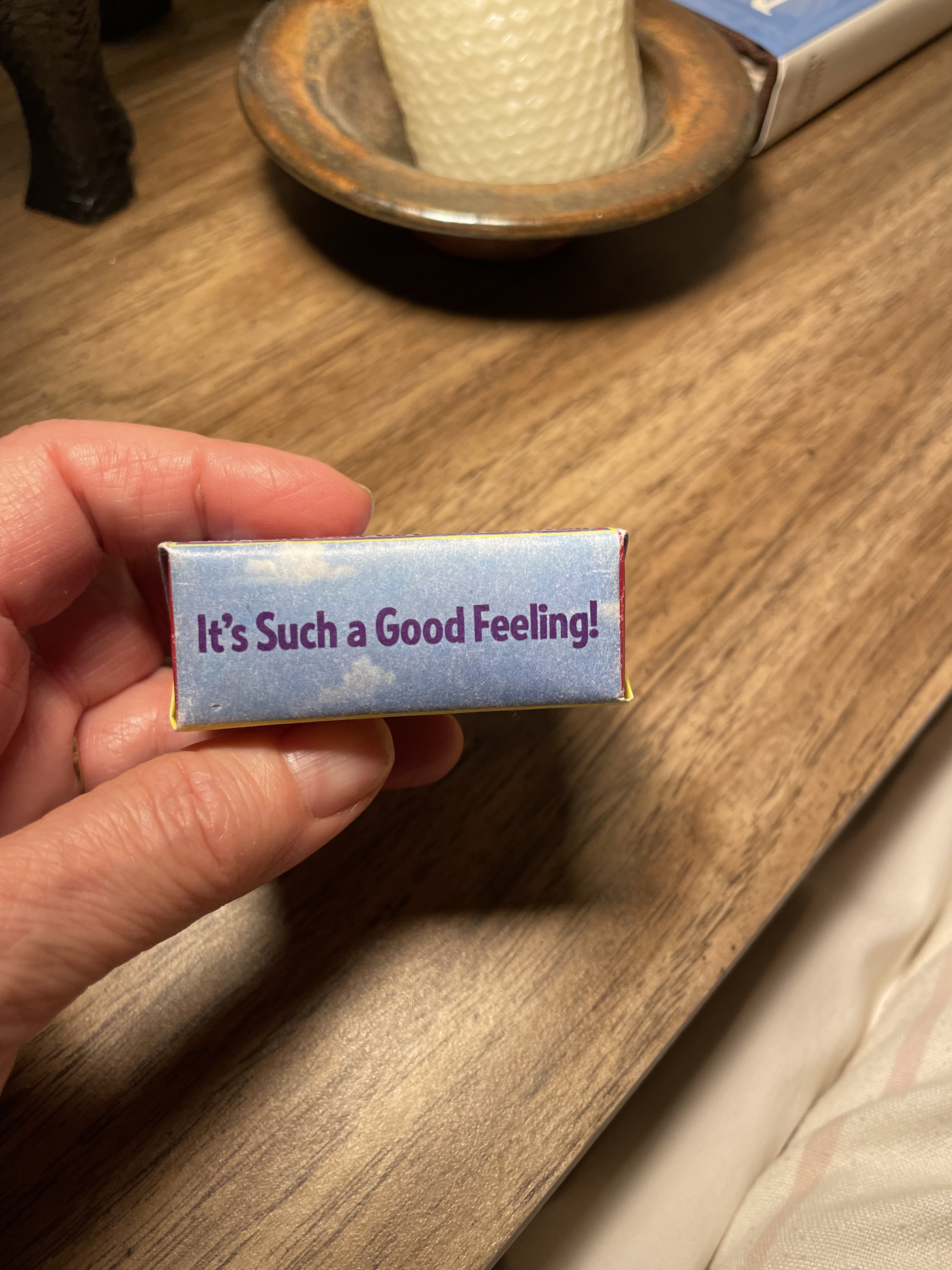 Bob and I arrived for dinner and Bob thrust the Binax Two Pack out the door, followed by Sally handing us a champagne goblet filled with sparkling cider, a white wine, a small travel alarm clock, and a bowl of savory Italian snacks shutting the door firmly but lovingly behind her.
