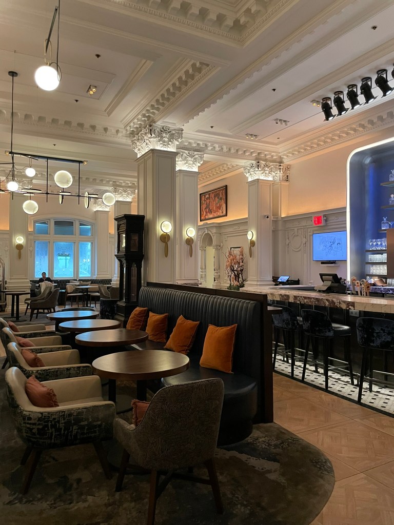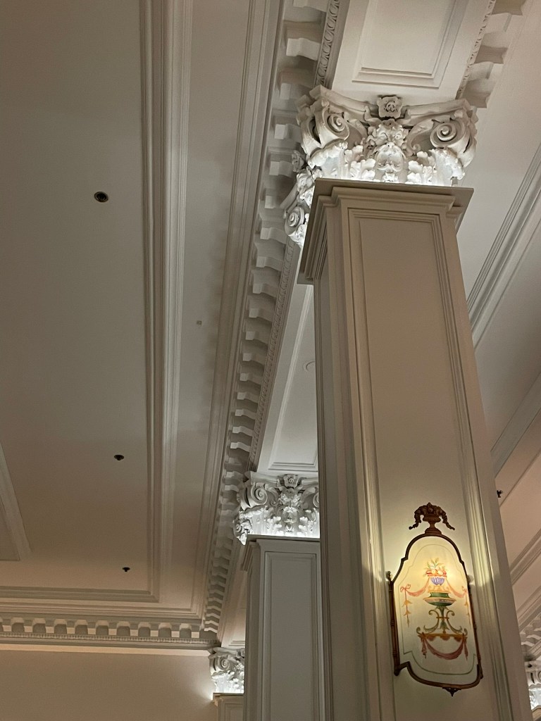 This recent trip found the Algonquin remodeled, the fabulous New Yorker Cartoon wallpaper gone from the hallways upstairs, replaced with creamy silk wallpaper, the round table itself diminished to cafe sized circles scattered around the once majestic dining room. Nevertheless, here are some details of the lobby that never disappoints. Including the resident lobby cat who of late is a ginger but always a bit aloof, as cats are.