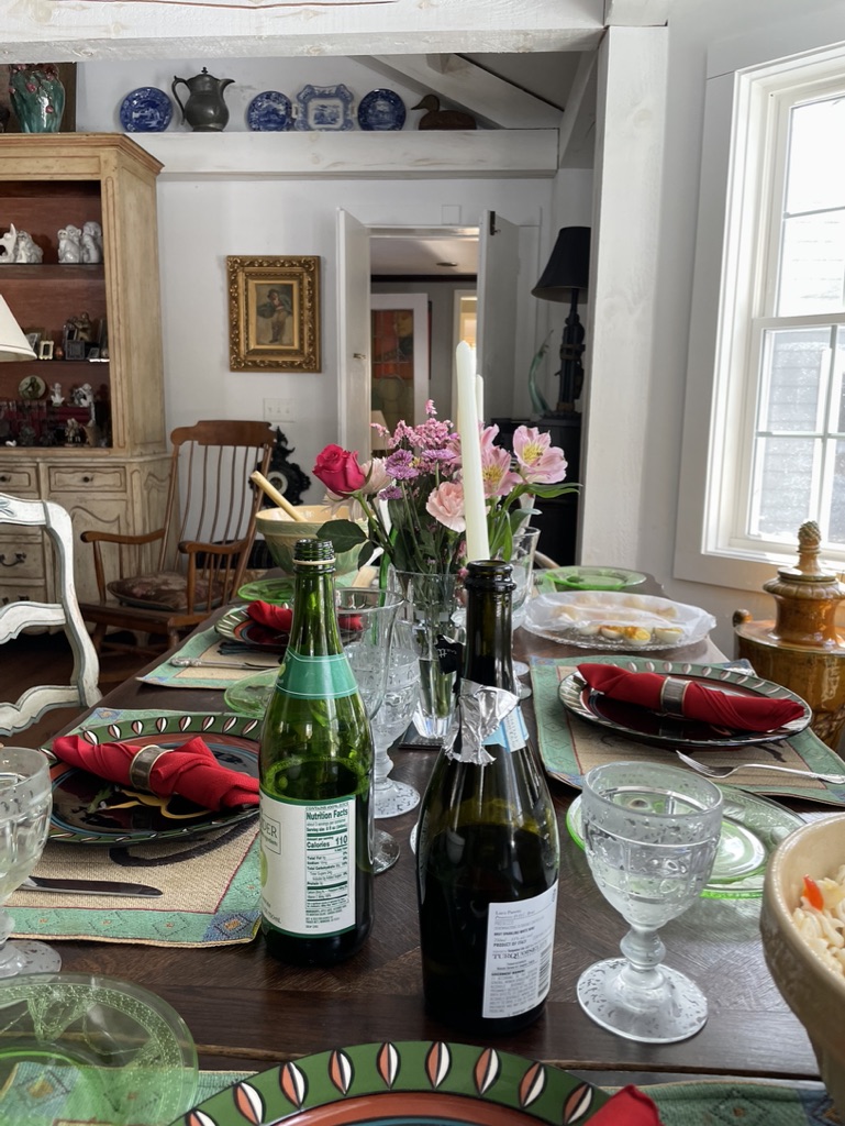 Our weekend also included a jaunt on Saturday to Connecticut for lunch with my friends David and Ando. They prepared a beautiful luncheon and this was particularly gratifying to have my college friends and early theatrical playmates meet each other. David and Ando and I have a star-studded theatrical production bibliography. I was delighted to have so many of my clever friends meet. It was sometime during that lunch that I realized what type of “bird” I like best – the mocking bird. Nothing is more attractive to me than good-hearted teasing from someone I love. And David was in fine form. I’ll spare the spars but the lunch was spectacular. We stayed about four hours before heading back to the lake to let Layla out.