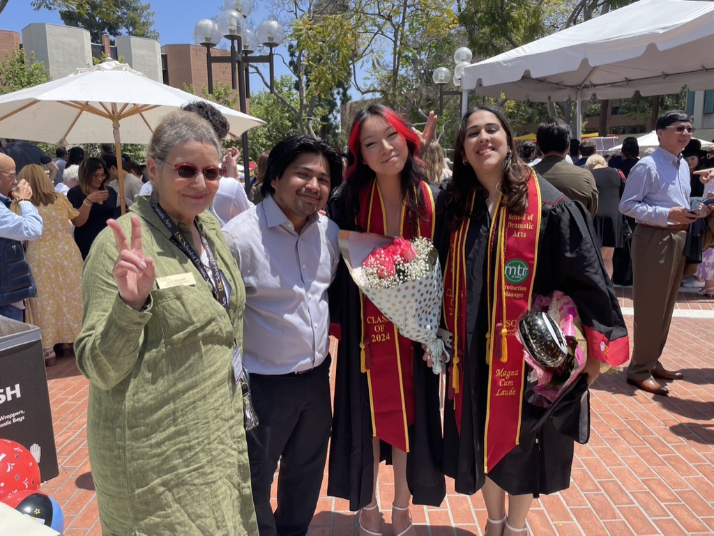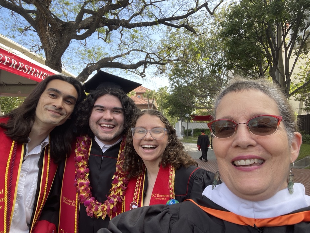 On Friday, I made my way down to the campus on the Dash F bus (which is still free since the pandemic). The bus was largely empty, and all the hype about getting to campus early made my arrival at 8:30 seem like overkill. The campus was filled with celebratory families, and both our SDA ceremonies at the Bing Theatre went smoothly. I celebrated my graduation into the world with our current crop of graduating students. Unfortunately, I didn’t get pictures with everyone on Friday.