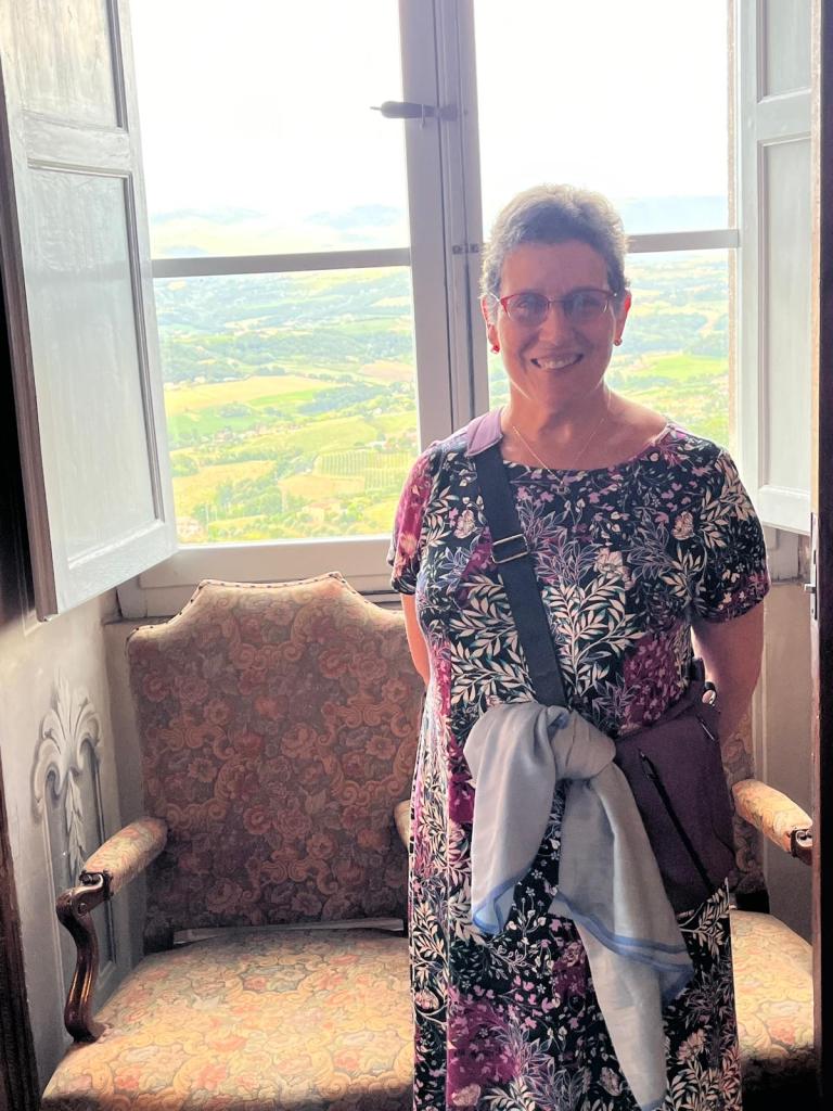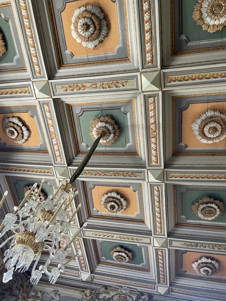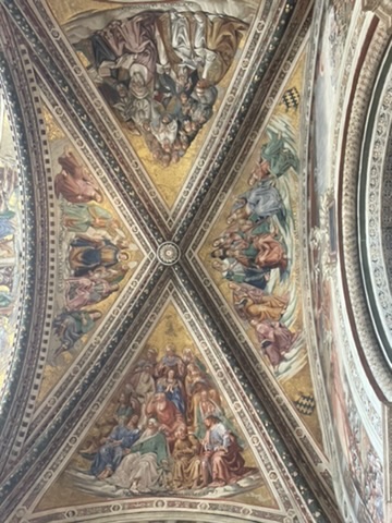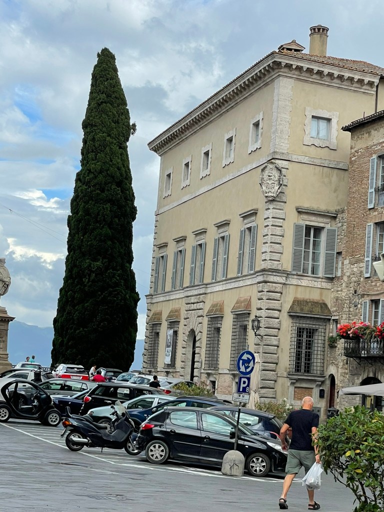 That evening, we split our party up and Sally and I went to nearby Todi to hear a concert in the palazzo of our host Marina’s Uncle Carlo while Bob went off for Pizza with Ouida and the Frasers. We had come here five years ago and the choirmaster was the same person who had shepherded the teen choir to sing in the grand room of the Palazzo. This time it was a group of about thirty adult singers and the power of their voices was notable in the room which is decorated with late nineteenth century representations of fantastical and imaginary Italian scenes. I didn’t take as many shots this time as I did in 2019 but you can see more in my blog from that time.