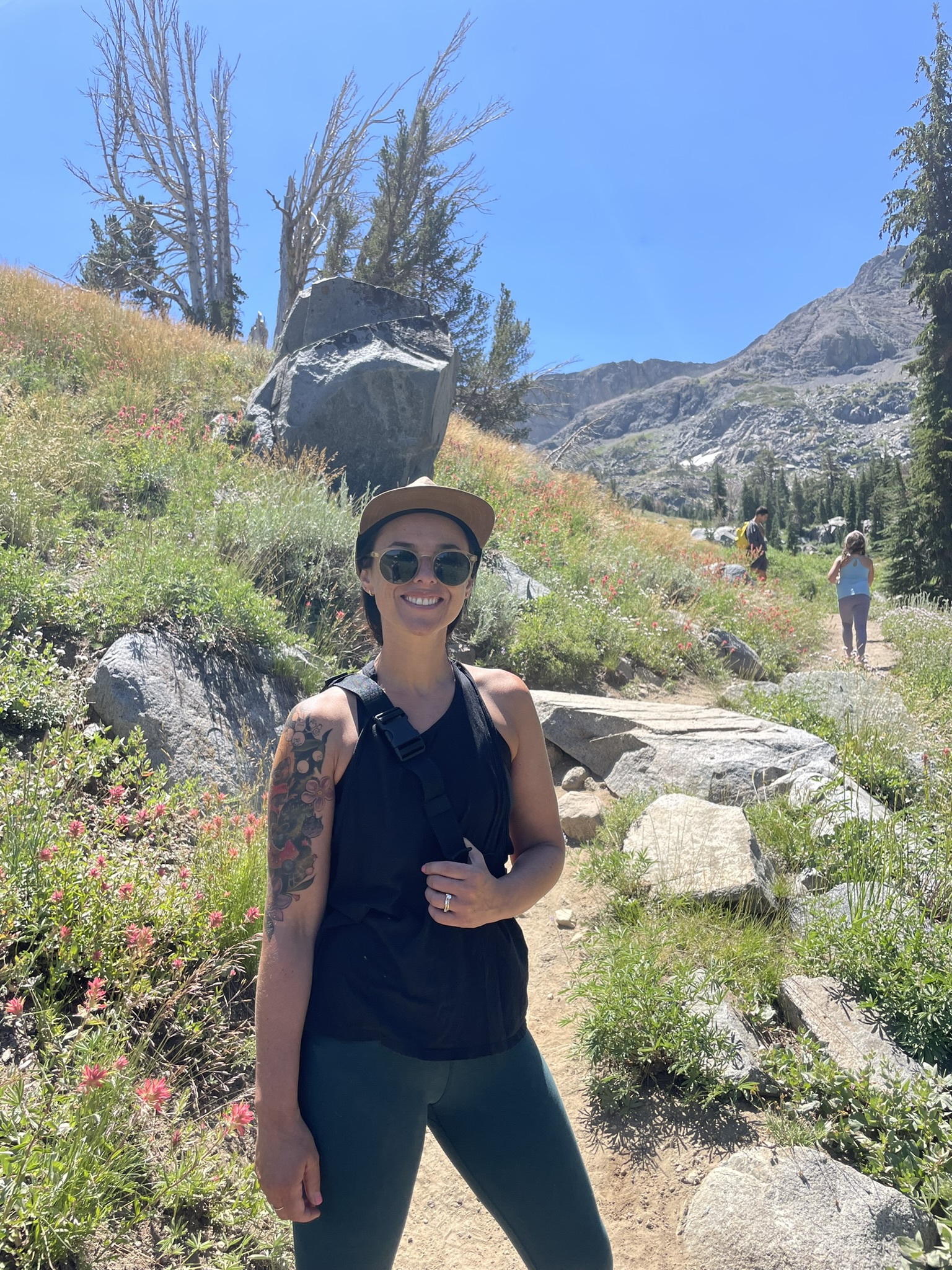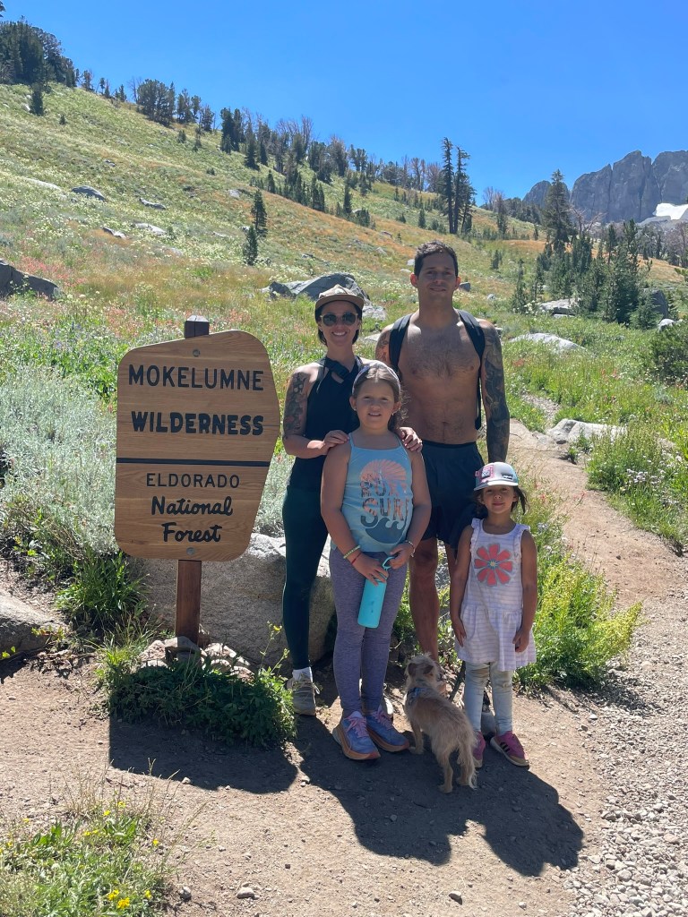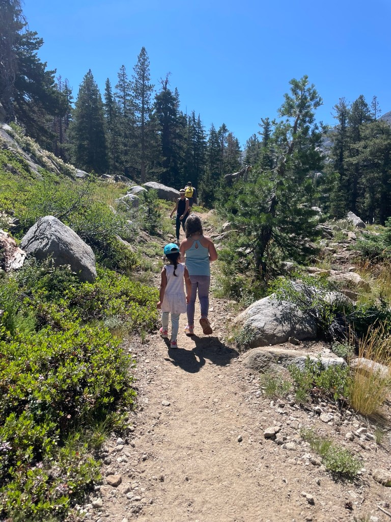 - Hiked to Lake Winnemucca through seemingly endless meadows of wild-flowers. Perfect bear country, but alas, no more sightings. The five mile hike (round trip) was accomplished by my five-year-old granddaughter and her eight-year-old sister with three carries and some strategically doled out candy breaks. I’m happy to say Nana made it, too. As did Cupid, their dog, but Skylar carried him down much of the way back when he refused to continue walking. The destination included the lake, of course, a beautiful blue and clear glacial lake which Skylar jumped into! Brave human! Along the way home, we were knackered but grateful for the day.