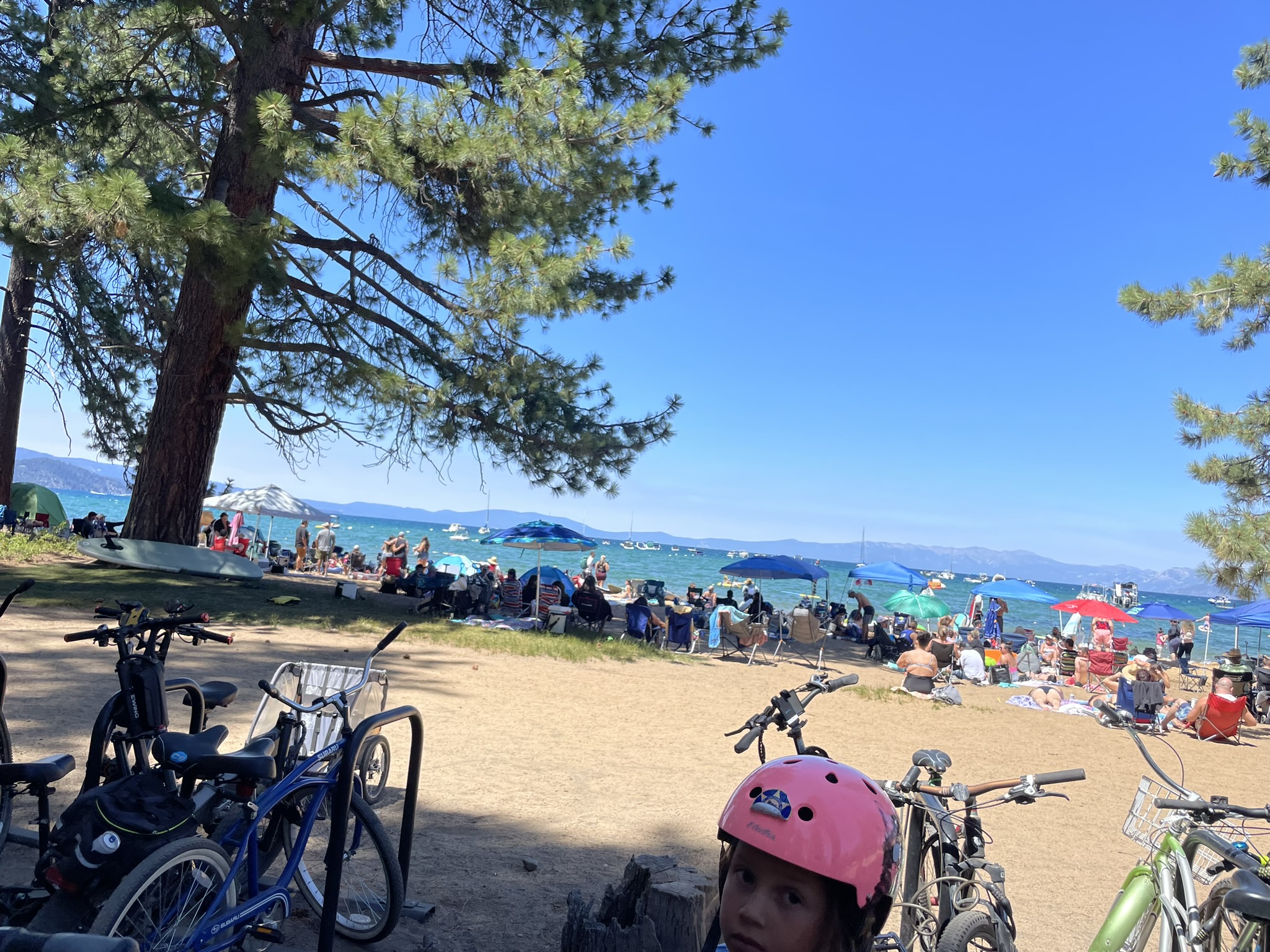 - Went to the beach at Lake Tahoe twice, once on a bike on a Sunday and once in the car on a weekday. Both trips were great. Yes, it’s true, you don’t forget how to ride a bike, but note to self: be sure the seat’s at the right height to avoid screaming knee pain.
