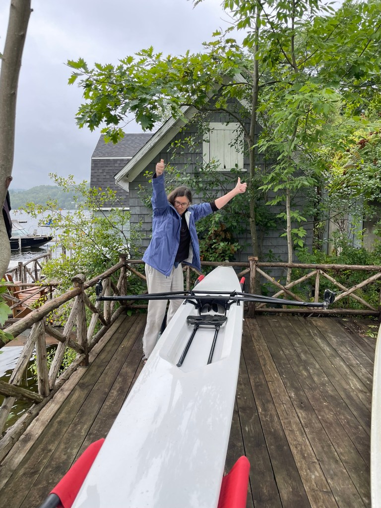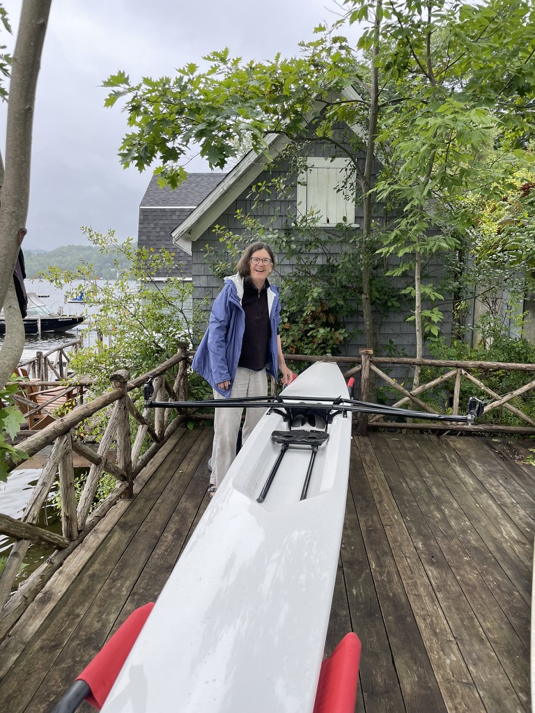 Here’s a shot of Sally after we rescued their rowing shells from the rising water on the dock. At one point, Sally remarked, “Didn’t you row crew at St. Paul’s?” I must say lifting the shell out of the water should have been more innately familiar/easier but we eventually got the job done. What I’ve learned over the summer of travel is that it isn’t so much the travel as the people you are doing it with or to or for. It isn’t that I have a curiosity of place, so much as a desire to spend time with friends in interesting places.