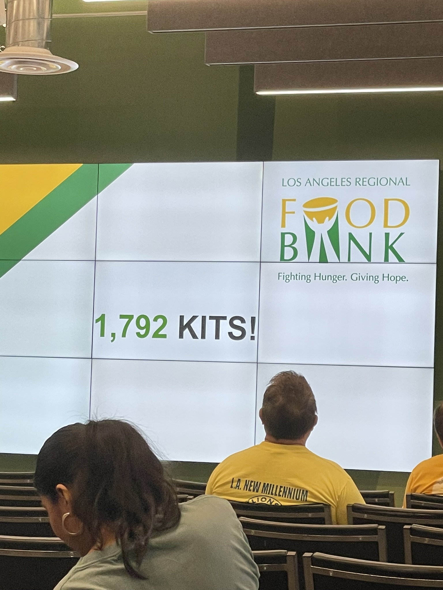 I now volunteer once or twice a week at the Los Angeles Regional Food Bank. On Monday, this week, there was a large group of high school students there, and the energy was high. I spoke with some of the teachers and they shared that they were promoting “tikkun olam” or world repair to their students by having them come to work at the food bank. Over a little less than two hours, we packed 1,792 kits for families. Wednesday’s group was smaller with only 616 kits, but each time I go, I enjoy meeting someone else who is there and finding out what encouraged them to come.