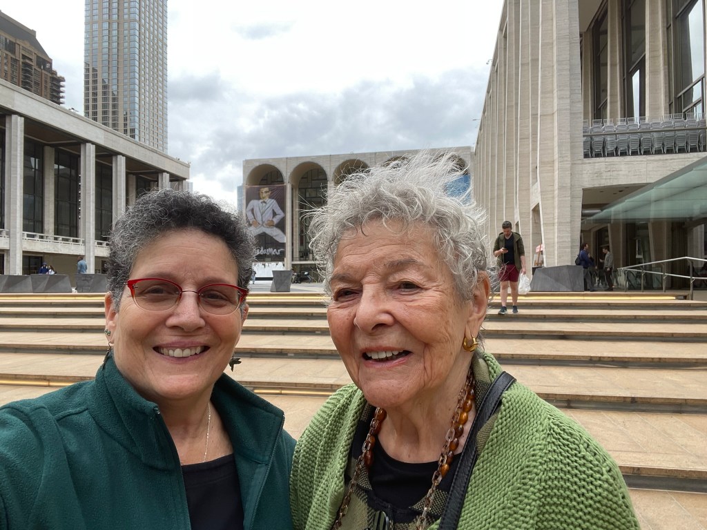 We had planned to go to the theatre that night and so we went to the TKTS office across from Lincoln Center, which was a heck of a lot less overwhelming than the one in Times Square. I know I’m a theatre person and all, but that midtown is really a scene. No less because the UN was in session with President Biden coming to speak. Jackie and I scored 3rd row center seats for Water for Elephants and then went back to her apartment for a rest and a bite to eat. I was having trouble keeping up with Jackie, who is a force of nature at 90. Couldn’t resist a selfie at Lincoln Center.