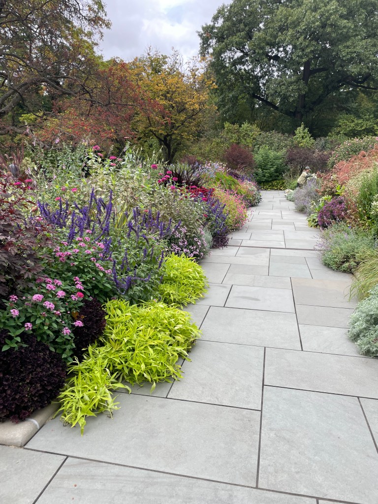 Tuesday morning, Bob and Sally and I went to the Conservatory Gardens for a quick walk and then Sally and I went on to MOMA. The Gardens are beautifully manicured, and there were dozens of senior citizen volunteers doing the work of weeding and sweeping the walkways. I tried not to capture them in these pictures. What a lovely city New York is! Sally and I had a yummy lunch after the museum at Le Pain Quotidien.