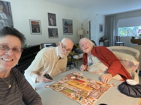 The weeks have flown by since my knee surgery on February 26th, and I’m cushioned between week 9 and week 10 right now. I flew to Washington, DC to be with my Dad and his wife Sally on April 23rd, and have been enjoying the tempo of their home and life, which includes three civilized meals daily and afternoons of reading or working on Stave puzzles. We have done three of those since I’ve been here. This was my favorite so far, the theme being baseball. Other afternoons we might have visitors who come to talk about Dad’s and Sally’s rich lifelong involvement in family planning or in Sally’s collecting of Munch lithographs.