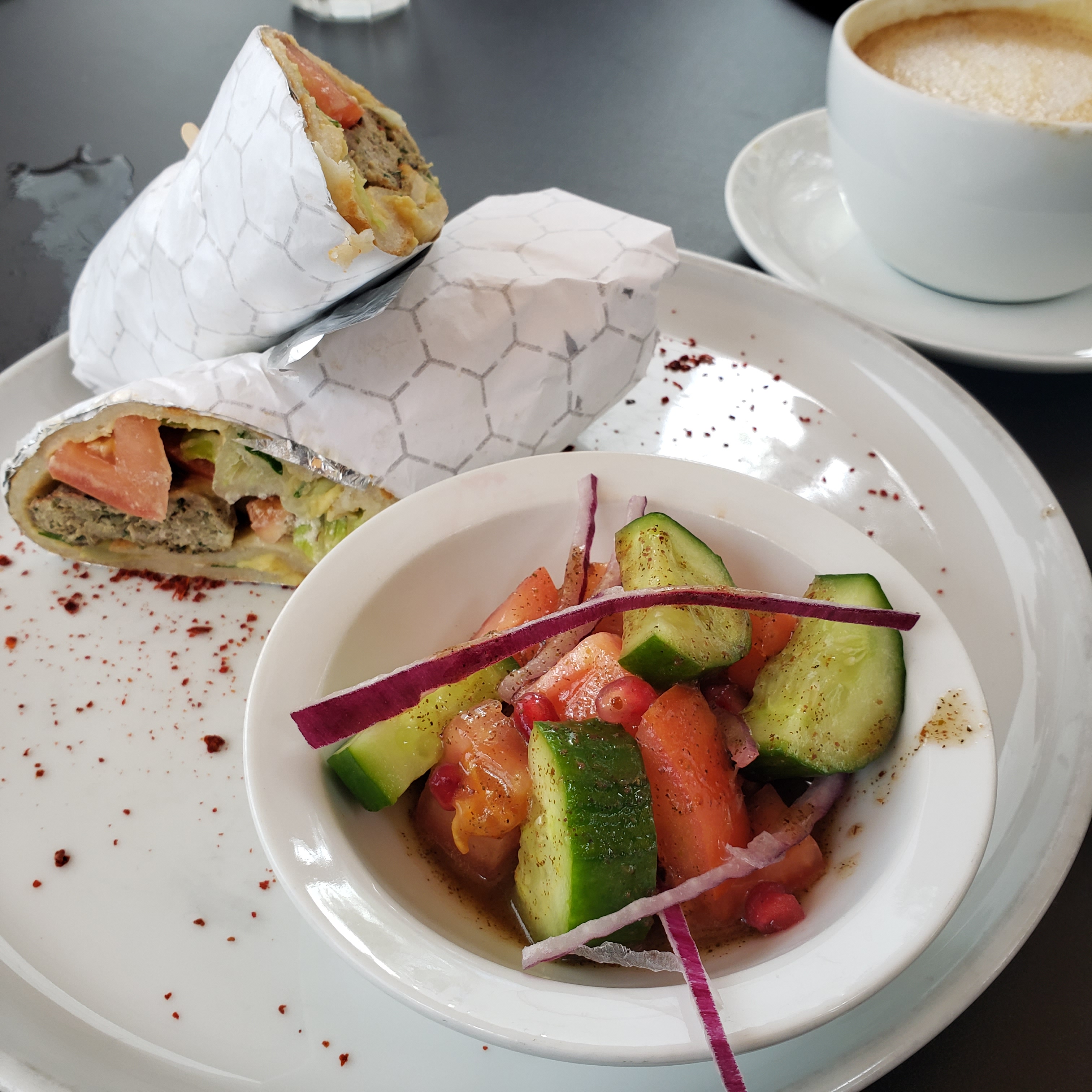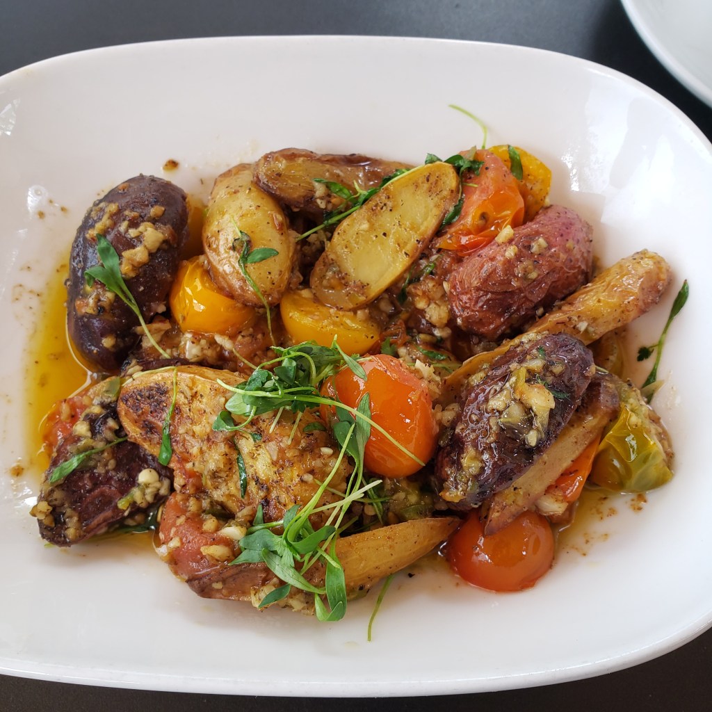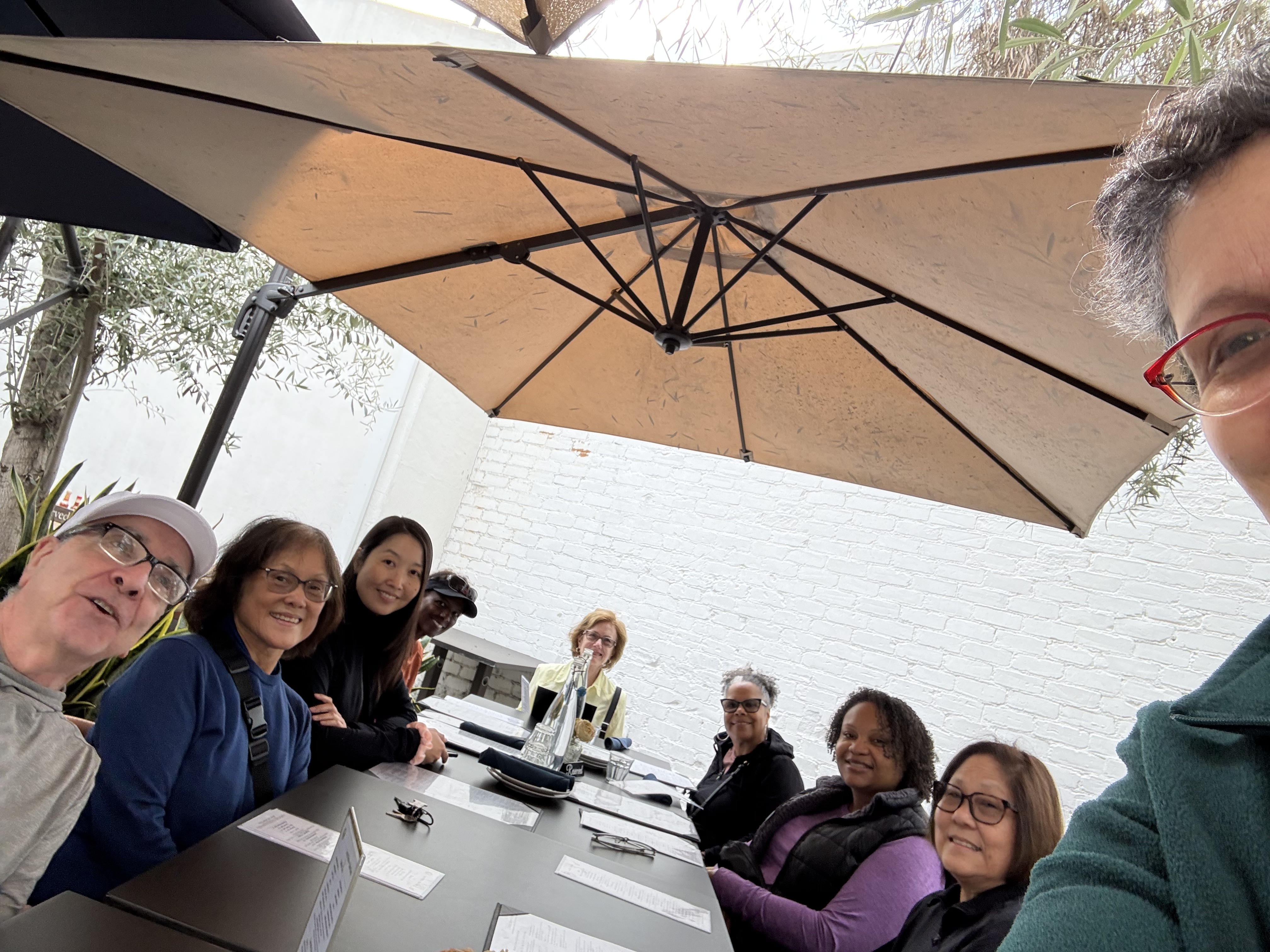 Wearing my “Do More of What Makes You Happy” T-shirt on Saturday, I found the ease in following that directive resulting in a beautiful hike with USC pals at Ernest E. Debs Park and lunch at the Levant Bistro. Most of my compatriots took advantage of the Dine LA special, which included a lovely turmeric soup, Batata Hara potatoes (so yummy!), a choice of wrap with a lovely side salad, and dessert! Here are some of the pictures from our group. I had breakfast instead due to my time crunch. Note: The entire table has to order the Dine LA menu to partake. The reason we were able to do differently was by dividing our tables into the regular menu folks and the Dine LA folks. (Sorry, Judy!)